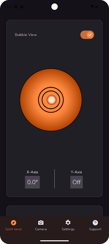 Vista dual para mediciones precisas: la vista principal te muestra los valores de inclinación horizontal y vertical en tiempo real. Solo tienes que colocar el móvil en posición vertical u horizontal y verás el ángulo inmediatamente. Puedes mover libremente las indicaciones gráficas por la pantalla y, si es necesario, bloquear el eje horizontal o vertical para fijar solo una orientación.