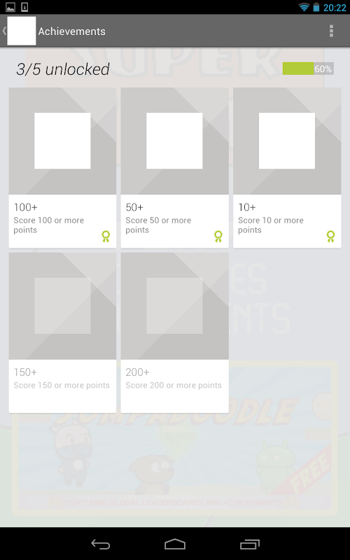Ten en cuenta que si no estás buscando un tutorial sobre cómo integrar LibGDX y Google Play Game Services, tal vez prefieras jugar una versión más completa del juego (Super Jump a Doodle):