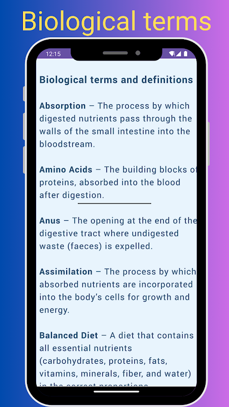 La aplicación también proporciona términos biológicos todos junto con su definición y están organizados en orden alfabético.