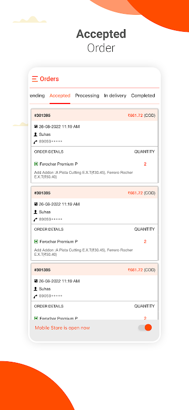 > Verifique que los detalles del cliente, como el nombre del cliente, la dirección y el número de teléfono móvil verificado, se mostrarán antes de aceptar pedidos.
