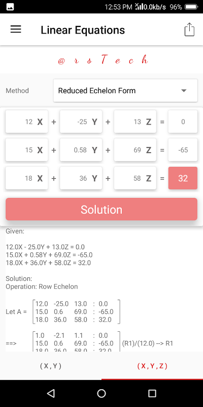 Muy útil para resolver las ecuaciones lineales. Lo único que tienes que hacer es ingresar los coeficientes de las variables.