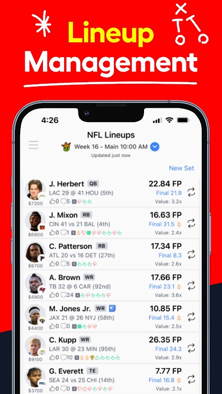 ✔ Chat comunitario en vivo: ¡intercambie estrategias DFS con la comunidad!