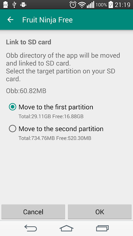 Link2SD utiliza una partición secundaria en la tarjeta SD y la utiliza como otro segmento de almacenamiento interno.