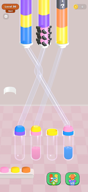 Elimina todas las botellas para completar el nivel, ¡pero ten cuidado! Si no conectas las tuberías correctamente, perderás. A veces, las tuberías se enredan y tendrás que desenredarlas para poder verter el líquido en las botellas correctas.