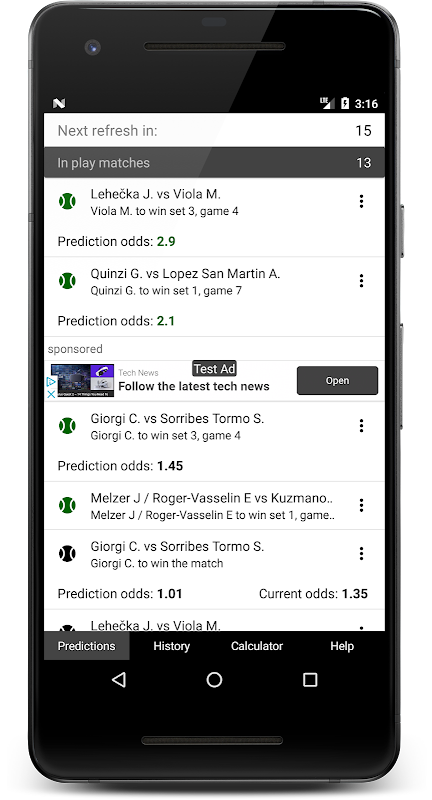 Tennis Predict0r gives predictions for live tennis matches using a custom prediction model.