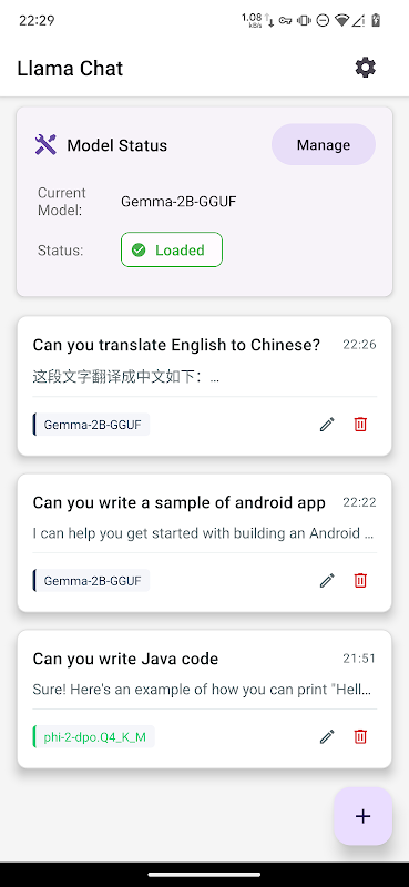 LlamaChat trae el poder de la IA avanzada directamente a tu dispositivo con total privacidad. A diferencia de los asistentes de inteligencia artificial basados en la nube, LlamaChat se ejecuta completamente en su teléfono, manteniendo sus conversaciones completamente privadas y disponibles incluso sin conexión a Internet.