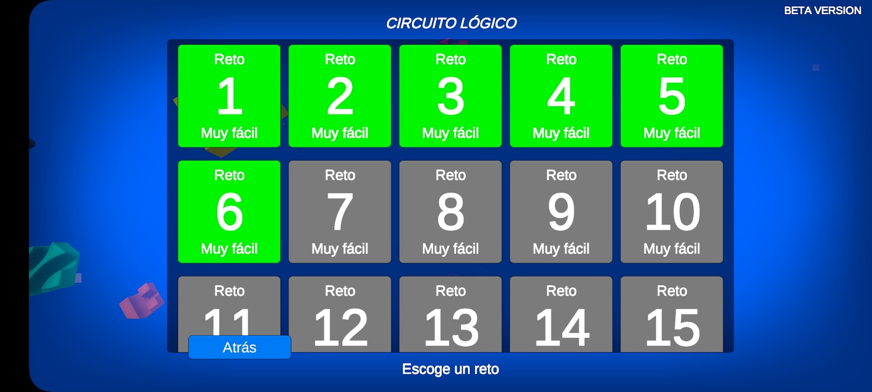 El juego cuenta con 60 retos con los que podrás pensar y divertirte, la dificultad va aumentando en base al avance de los retos.