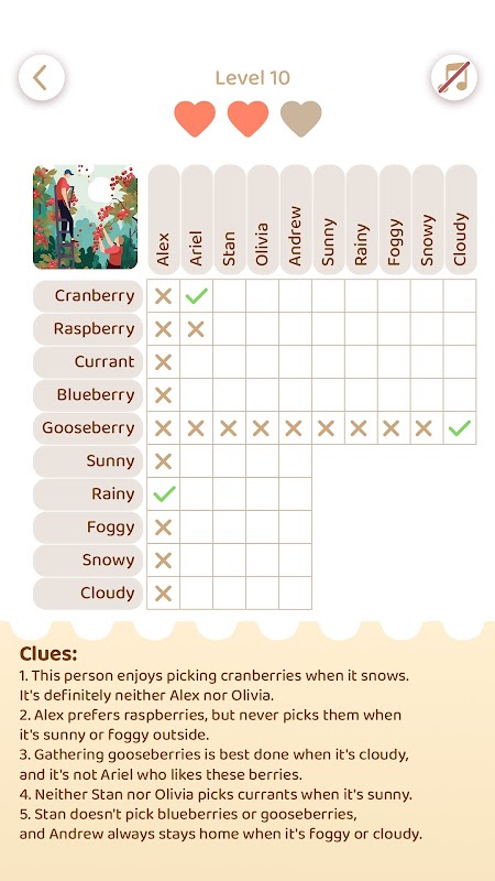 En Logic Puzzles, cada pista cuenta a medida que navegas por intrincados caminos lógicos y resuelves acertijos complejos. Desde desafíos de lógica cruzada hasta acertijos de lógica, cada nivel ofrece una experiencia única y gratificante que te dejará con ganas de más.