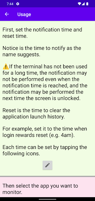 ¡Fácil de usar! Simplemente seleccione una aplicación y configure el tiempo de notificación y el tiempo de reinicio.