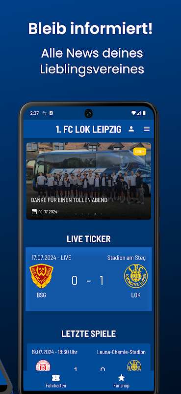 Ten siempre a mano el equipo del 1. FC Lok Leipzig y los resultados de la temporada. Con la aplicación LOK siempre estarás ahí. Utilice el nuevo centro de partidos para seguir de cerca el juego actual. Reciba puntajes actualizados y toda la información del juego como notificaciones.