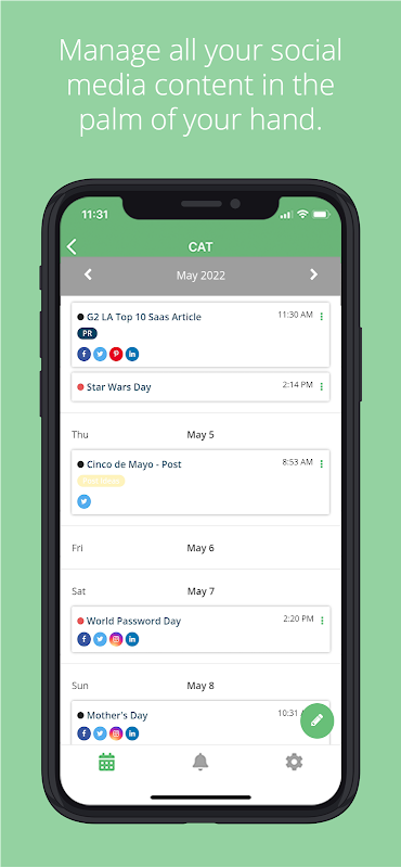 • Acceda a todos los calendarios y publicaciones de redes sociales creados en la aplicación web Loomly.