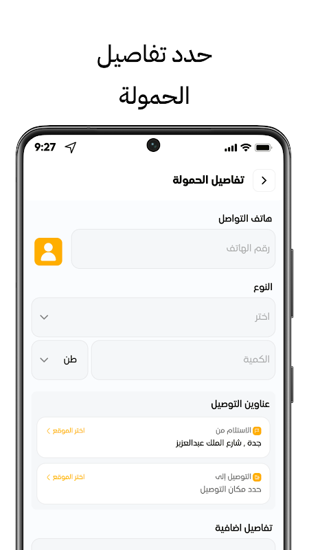 مع لوري، تقدر تنقل أي غرض بسهولة وفي أي وقت. اختار نوع الغرض، حدّد موقع الاستلام والتسليم على الخريطة، وسيقوم السائق متاح بخدمتك فورًا.