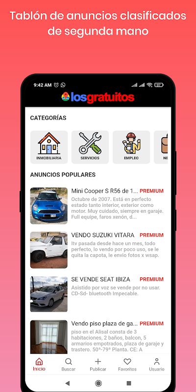 Para comprar y vender de una manera fácil y sencilla Descarga GRATIS la App Los Gratuitos, la aplicación más actual en España y accede a más de 50.000 anuncios de coches segunda mano, venta de pisos, ofertas de empleo, móviles, moda y todo lo que te puedas imaginar.