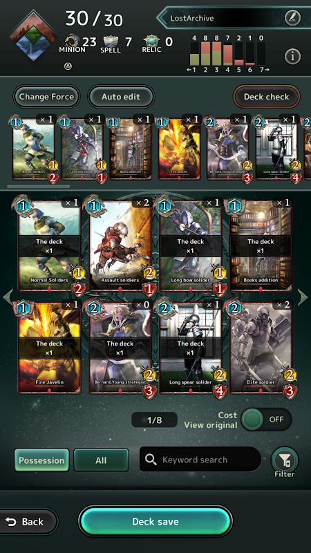 Lost Archive está listo para varias formas de juego divertidas que los juegos de cartas convencionales nunca tuvieron. Por ejemplo, el sistema 「Compartir mazos」 en el que puedes compartir tu propio mazo con otros jugadores y usar mazos creados por otros jugadores. Además, 「Colección」puedes obtener una tarjeta con el letrero de ilustrador