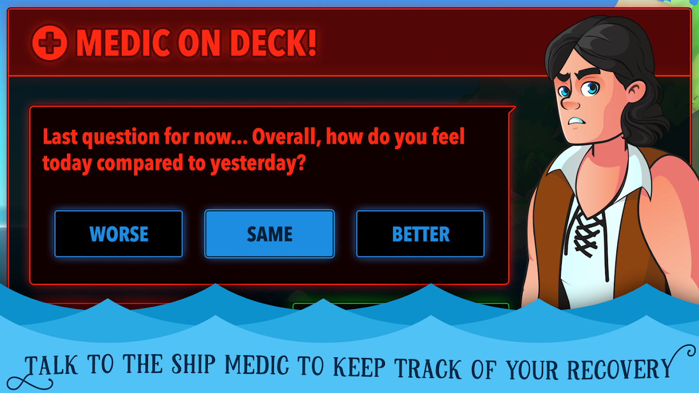 Tell the ship medic how much of your at-home treatment you’re able to do and if you’re feeling better (or worse) than the previous day, then track your progress in weekly recaps.