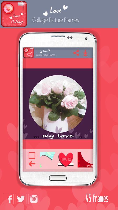 Esta increíble máquina de collage de fotos es algo que siempre has querido tener. Con este editor estudio fotográfico puede estar seguro de que va a tener las más hermosas fotos en las redes sociales. Preparar a ser popular durante la noche! Este fabricante de fotomontaje le proporcionará impresionantes decoraciones pic que harán que sus amigos sin aliento. En sólo un par de horas, gracias a Amor Collages De Fotos & Marcos APP tendrá cientos y cientos de gustos y seguidores y que se convertirá en uno de los más famosos editor pic profesional.