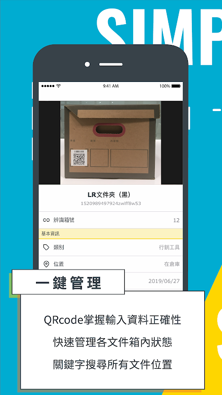 每個 LRFILE 文件箱都配有一個專屬 QR Code 可與 LRFILE App 連線,讓您線上紀錄文件資料、分類管理,不管到哪都可以輕鬆掌握所有文件箱數量與狀態。並且透過關鍵字快速搜尋,擺脫找不到重要文件的困擾!