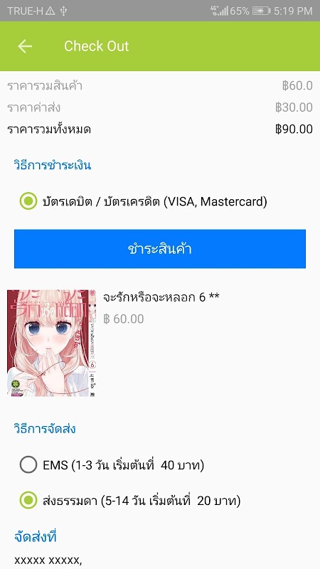 - การชำระเงิน สามารถชำระเงินด้วยบัตรเครดิต และ บัตรเดบิตได้