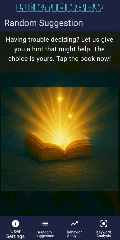 Inspirada en los conceptos de suerte y elección, esta aplicación está diseñada para ayudarte a tomar decisiones más conscientes y fomentar la acción.