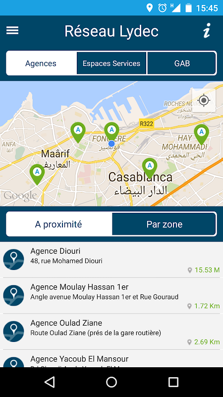 L’application Lydec vous donne aussi accès à un ensemble d’informations pratiques : réseau d’agences Lydec et de points de paiement des factures avec repérage géographique et itinéraires, actualités concernant Lydec et son environnement, conseils pratiques …