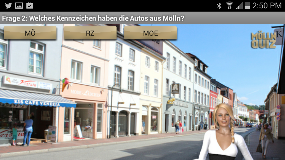 Die bezaubernde Laura führt Sie durch das Game und die schöne Stadt Mölln. Bei jeder Frage gibt es durch Antippen neue Details der Stadt zu entdecken. Die Sommer-Fotos von Mölln wurden exklusiv für dieses Quiz gemacht. Aber Vorsicht, wenn Sie eine Frage falsch beantworten, fangen Sie wieder ganz von vorne an. Der Herpers Verlag veröffentlicht eine Vielzahl von Stadt Quizzen. Infos unter www.stadt-quiz.de