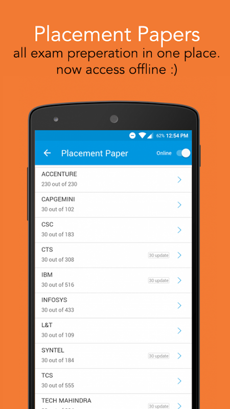 M4maths tiene numerosos pregunta preparatoria con respuestas y soluciones de expertos para las pruebas previas a la colocación de compañías bien conocidas. 50 preguntas fuera del banco de preguntas son libres para cada empresa que puede ser desbloqueado mediante el pago de la cantidad de 199Rs para una empresa o 699Rs para todas las empresas. El usuario puede marcar las preguntas favoritas, obtener patrones de exámenes precisos y tabla de líderes de la empresa en particular. Los usuarios también pueden tomar 10 minutos-10 preguntas pruebas simuladas con el nivel de dificultad que van desde fácil a difícil en la aplicación en sí.