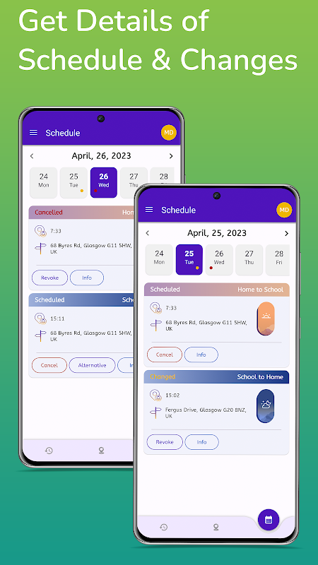 La aplicación móvil de Maaman está desarrollada para permitir a los padres acceder y controlar los eventos de transporte de sus hijos y el horario semanal a través de sus teléfonos a su total conveniencia.