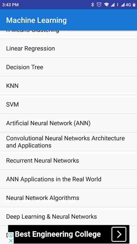 App Covers a large number of Topics Machine Learning Process and Algorithms, Project anf Interview Questions also.