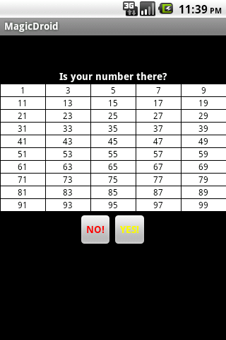 A series of numbers will be shown to you. You will have to say a few times if your number is in the list or not. And finally I will tell you what is your number! Whou! Magic!