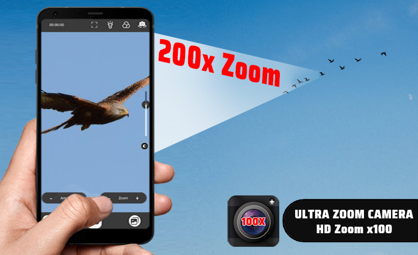 - Amplíe hasta 10 veces la vista original de la cámara de su teléfono inteligente para una ampliación extrema.