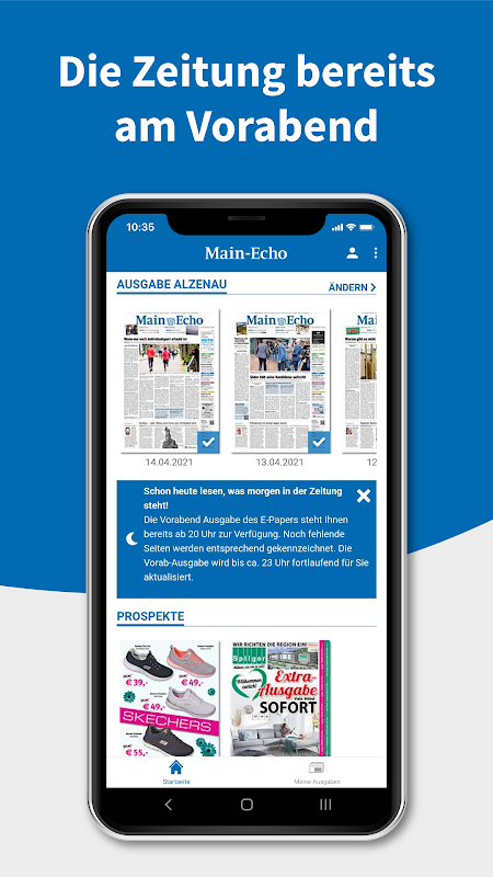 * Cómodo: Lee tu Main-Echo en cualquier momento y lugar. El periódico está disponible desde las 20:00 h del día anterior.