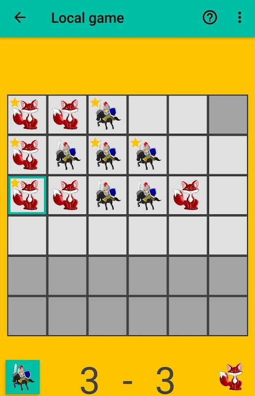 - Who reaches 5 points first or who scored more points at the completion of the playing field, wins the game. If, at the end of the game, you have the same amount of points than the opponent, it is a draw.