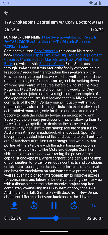 La mejor manera de escuchar en vivo, reproducir o descargar la Mayoría Informe podcast.