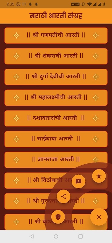 Marathi Aarthi Sangrah application is an application that contains various Hindu gods and goddess aarthi, which you can use in your day-to-day life for chanting different gods.