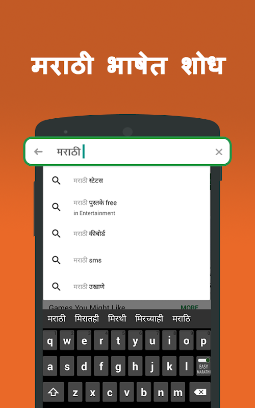 La herramienta fácil de entrada marathi aumenta el aprendizaje de la lengua konkani al usuario escribir con el teclado Inglés y traductor konkani también se traduce caracteres de marathi. Después de enterarse de usuario de la lengua marathi puede escribir o leer los periódicos aplicaciones marathi utilizando el teclado escribiendo marathi.
