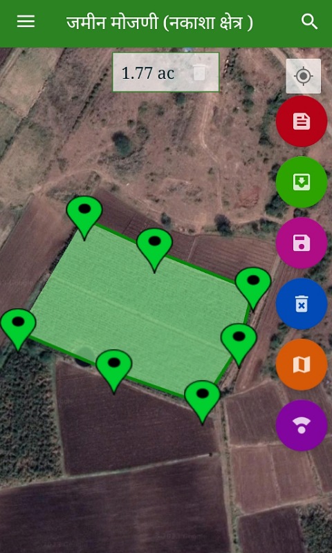 Esta aplicación Marathi jamin mojani mide la tierra del pentágono cuadrado triangular o de cualquier forma irregular.