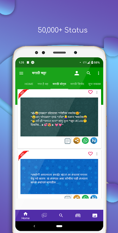 Get a daily latest Marathi Message to share with your friend friends from Marathi Katta’s huge Collection. Huge collection of latest messages, quotes & latest jokes with lots of categories for android phones!! With Support of Offline & FREE of all SMS collections having daily auto-updates!!