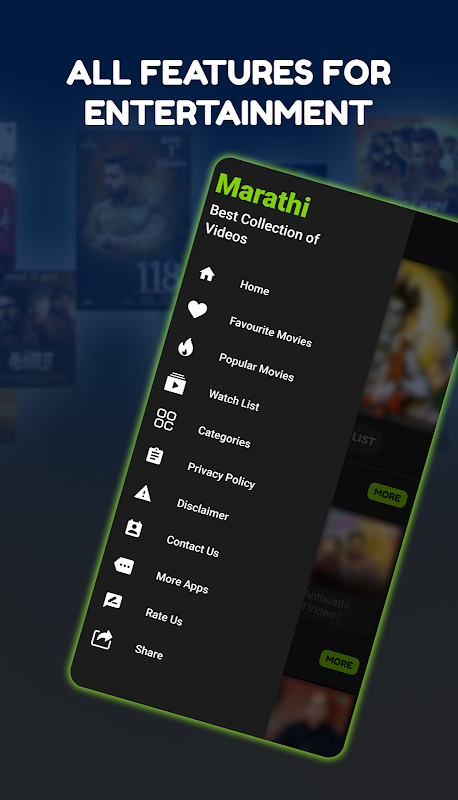 Marathi Videos App categories: