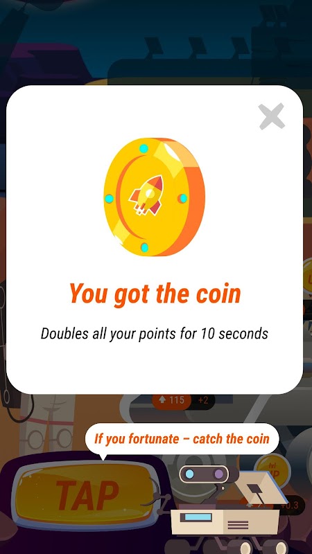 ¡Toca y desarrolla nuevos edificios y obtén ganancias de ellos! Atrapa una moneda de oro y obtén ganancias adicionales. Cuida de los colonos y mejora sus condiciones de vida. Desbloquea el robot asistente para que pueda animarte. Este es un juego de tapping, y si un jugador no tiene suficiente dinero para mejorar, siempre puede hacer un tap.