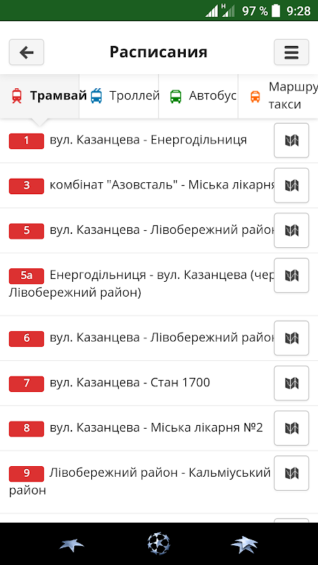 В приложении доступно движение общественного транспорта по городу Мариуполь в режиме онлайн. Выбор маршрута и расписание движения общественного транспорта по Мариуполю и многое другое.