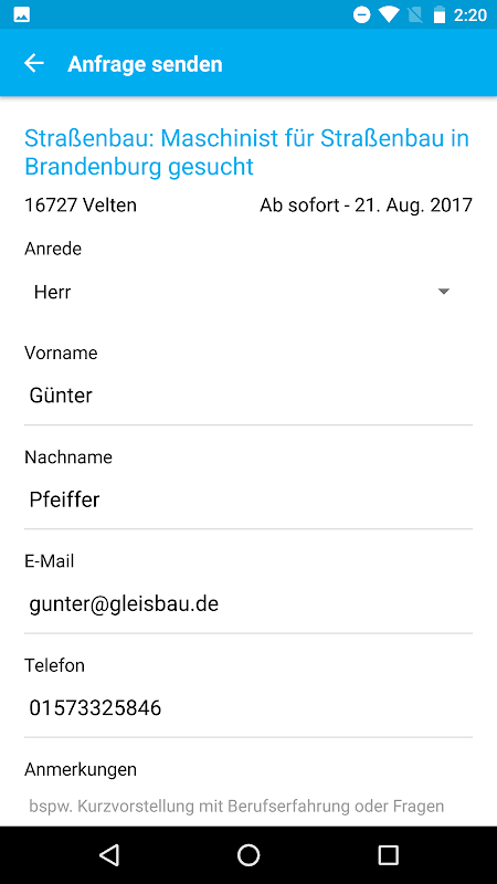 Über die maschinator App können Sie als Maschinist gemäß Ihres Suchprofil Aufträge filtern und bekommen dann die aktuellsten Angebote als Sofort-Benachrichtigung auf Ihr Smartphone. Bei Interesse kann sich direkt auf den Auftrag beworben werden, indem die Kontaktdaten und die Lohnvorstellungen angegeben werden. Sobald der Auftraggeber Ihr Arbeitsangebot ausgewählt hat, erhalten Sie in einer E-Mail die detaillierten Kontaktdaten des Auftraggebers und können mit ihm die Auftragskonditionen direkt ausmachen.