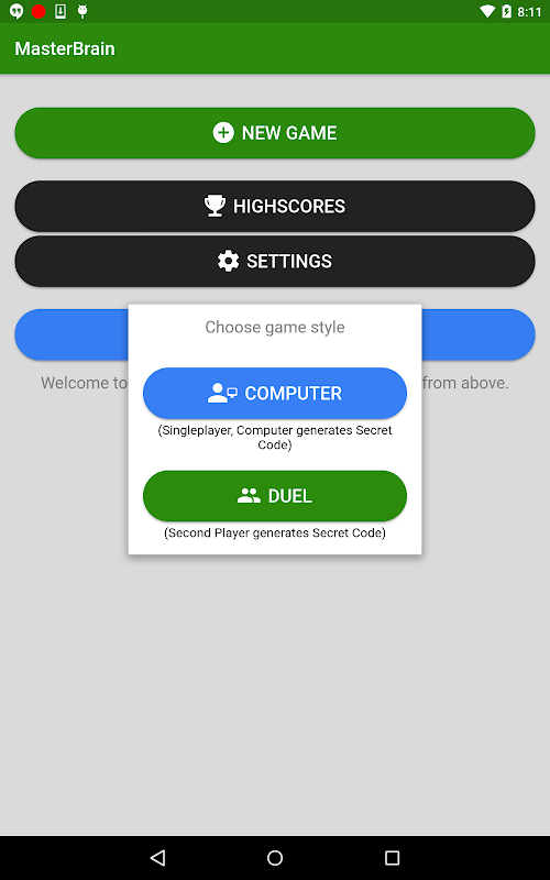 Cada juego es un nuevo desafío, debes adivinar tácticamente otro código secreto. Para ello, puedes establecer diferentes colores en cada fila. La aplicación te dirá cuántas conjeturas fueron correctas y si la posición de los alfileres de colores es correcta. Con este conocimiento, establecer nuevas filas es fácil. Bueno, al menos si tienes un Master Brain ;)