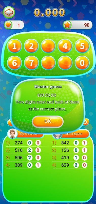 1. Si alguno de los números de su conjetura está incluido en el número de su oponente y el dígito es correcto, se muestra en color VERDE.