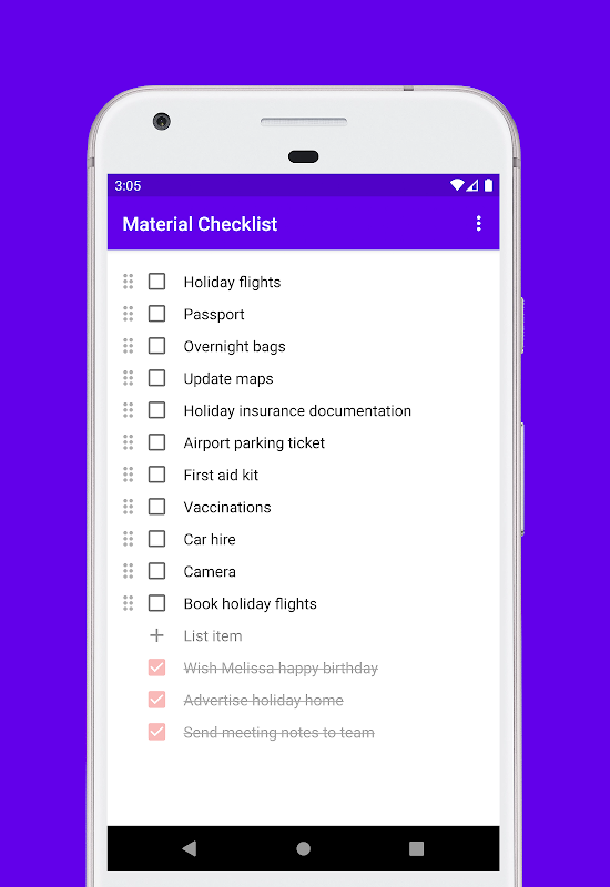 Esta es la aplicación de ejemplo de la biblioteca Lista de verificación de materiales. ¡Puedes encontrar más detalles en la página de GitHub!