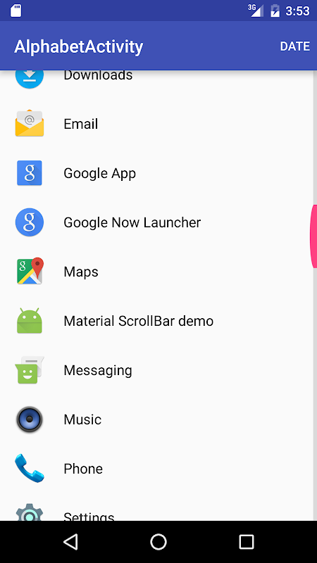 Aplicación de demostración para la biblioteca MaterialScrollBar.