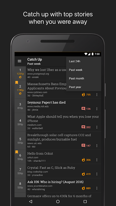 Experiencia de lectura Hacker News rápido, moderno y flexible para los teléfonos y tabletas.