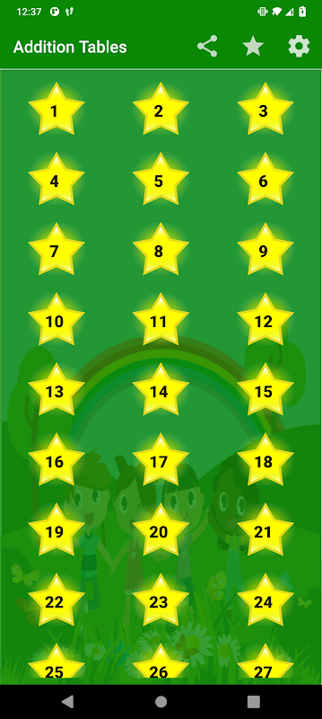 Esta aplicación ayuda a los niños a aprender a sumar fácilmente usando tablas de sumar. Se han agregado funciones de exámenes para probar el rendimiento de Kids. Se han añadido tablas del 1 al 100.