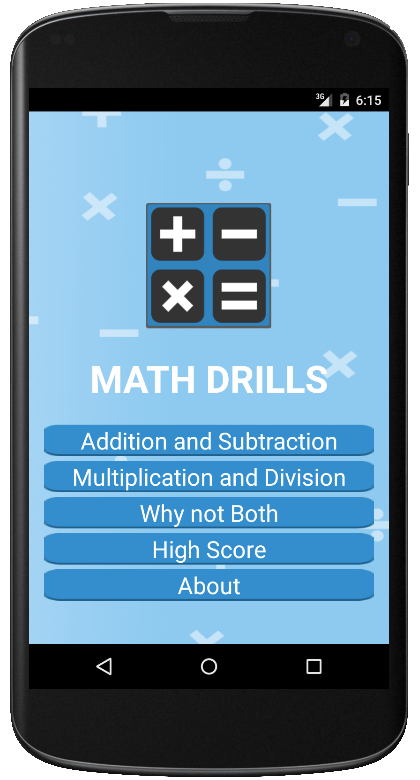 Math Drill, aplicación donde el usuario responde ecuaciones aritméticas aleatorias en un tiempo limitado.
