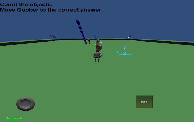 Mentalmente contar o llevar objetos en la pantalla, a continuación, utilizar una palanca de mando en pantalla para conducir un jeep en una mesa de billar gigante para aprender las habilidades básicas de matemáticas.