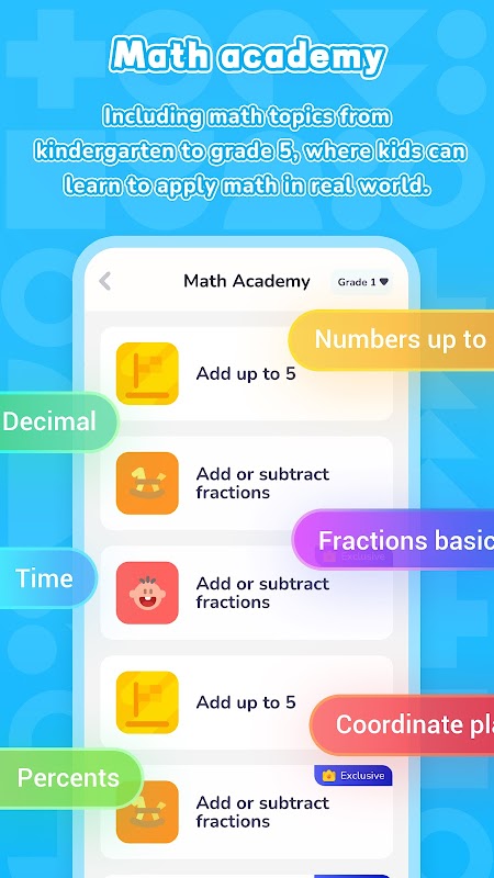 ● 🏫 Math Academy: Basado en US COMMON CORE y Singapore Math, diseñamos ejercicios integrales y del mundo real que cubren una gran variedad de temas matemáticos.